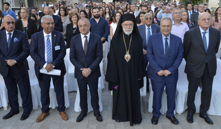 استهل الاحتفال بدخول الطلاب ثم النشيد الوطني، فكلمة لمتري قال فيها: “ببركة سيادة المتروبوليت الياس، أرحب بكم، أصحاب الدولة والسعادة، وأهالي الطلاب الكرام. عند بدء السنة الدراسية الأولى في كلية الطب، خاطبتكم أيها الطلاب الأعزاء بوصفكم شركاء لنا في تأسيس الجامعة. يومها، دفعني إلى هذا القول رجاء أن تكونوا صناعا لصورة كليتكم وسمعتها وأن تختبروا بروح خلاقة ومثابرة تعلما مجددا وغير تلقيني، يقوم على التفاعل المستمر بين الطلاب والأساتذة”.
