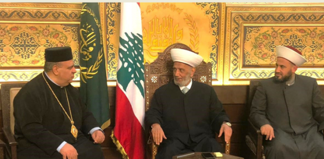 استقبل مفتي الجمهورية اللبنانية الشيخ عبد اللطيف دريان في دار الفتوى رئيس أساقفة الفرزل وزحلة والبقاع للروم الملكيين الكاثوليك المطران إبراهيم إبراهيم في حضور مفتي زحلة والبقاع الشيخ علي غزاوي.