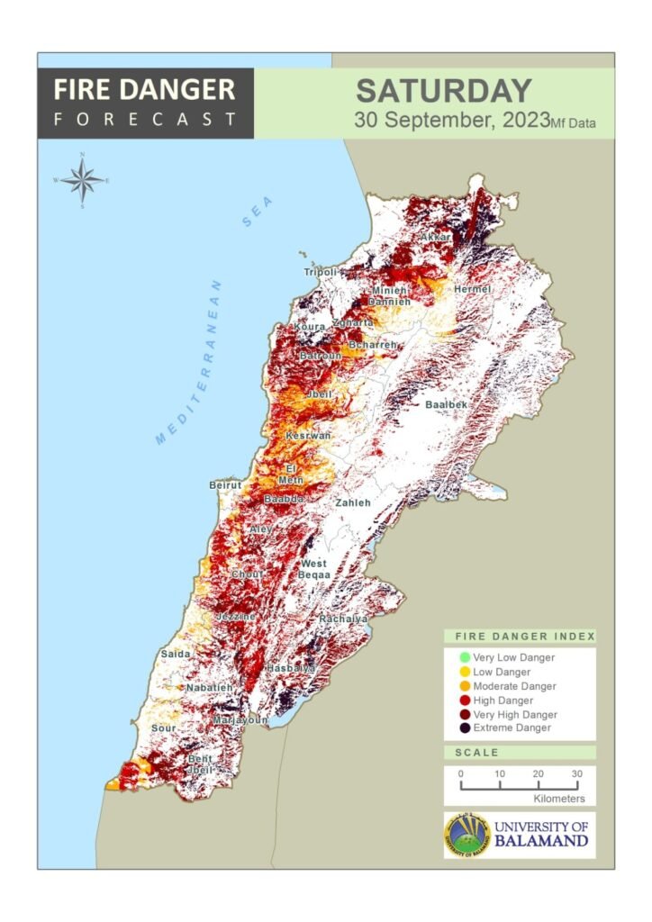 “يشهد اليوم ارتفاعا كبيرا في مؤشر خطر الحرائق خصوصاً في مناطق عكار والضنية والكورة وزغرتا والبقاع الشمالي والبقاع الغربي وراشيا وبنت جبيل وحاصبيا.