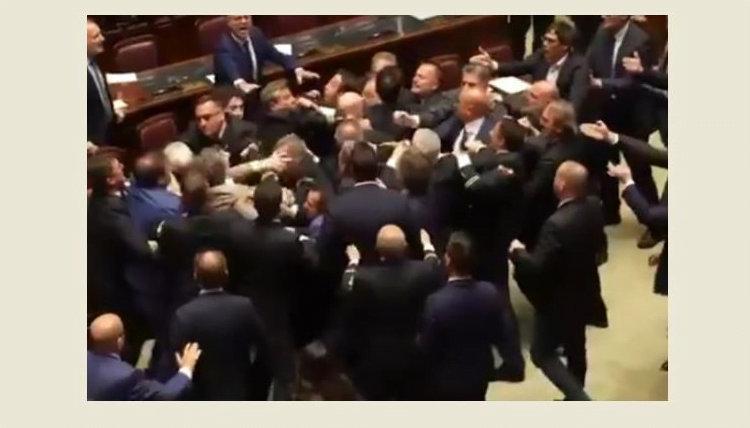 اندلعت الفوضى في البرلمان الإيطالي بعد تعرض أحد النواب لهجوم أثناء محاولته تسليم العلم الإيطالي إلى نائب آخر بشأن مشروع قانون للحكومة المحلية، بحسب”روسيا اليوم”.