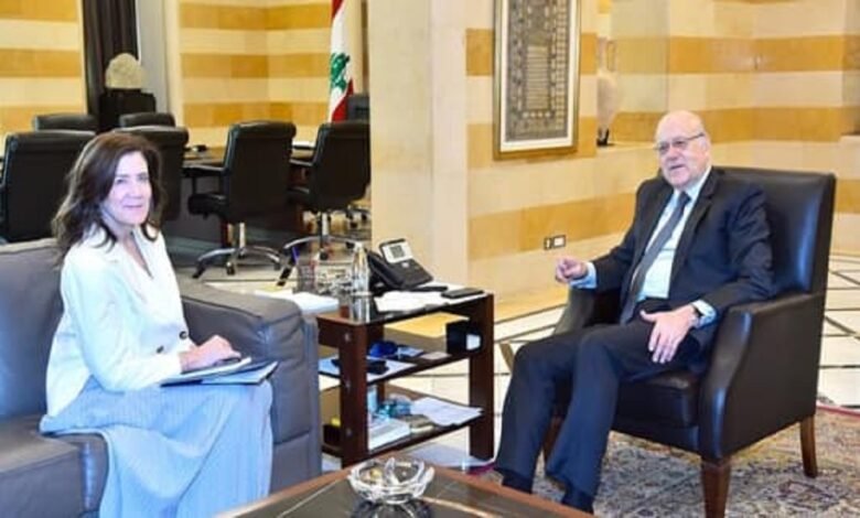 التقى رئيس حكومة تصريف الأعمال نجيب ميقاتي سفيرة الولايات المتحدة الاميركية دوروثي شيا في السرايا، وبحث معها التطورات الراهنة والوضع في جنوب لبنان وغزة.