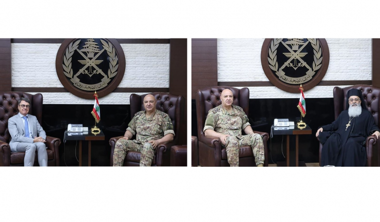 استقبل قائد الجيش العماد جوزاف عون في مكتبه في اليرزة السفير البلجيكي في لبنان Koen Vervaeke، وتناول البحث الأوضاع العامة في لبنان والمنطقة. كما استقبل النائب الأسقفي العام لأبرشية الفرزل وزحلة للروم الكاثوليك الأرشمندريت نقولا حكيم، وجرى التداول في شؤون مختلفة.