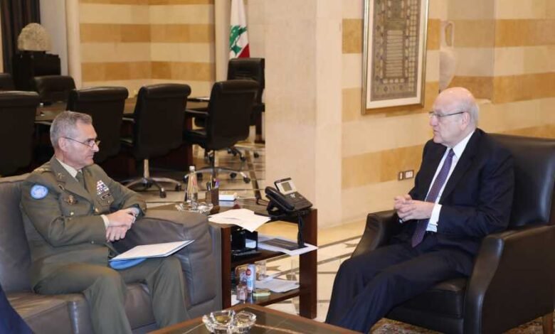 ميقاتي يبحث مع لازارو في تنفيذ الـ 1701 ويلتقي وفد العسكريين المتقاعدين