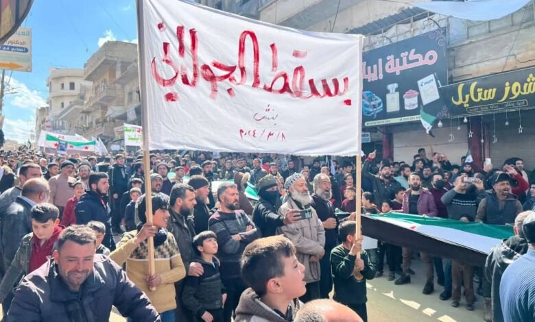 يوسف حسن- على وقع الاحتجاجات الشعبية ضد هيئة تحرير الشام الإرهابية بقيادة أبو محمد الجولاني في محافظة إدلب، بتاريخ 28/ 6/ 2024، خرجت مظاهرات في مدن وبلدات وضواحي مدينة إدلب، بالتزامن يوم الجمعة. واحتج المتظاهرون على استمرار سياسة القمع والاستبداد والاختطاف والاعتقال والتعذيب والقتل من قبل هيئة تحرير الشام وطلبوا المساعدة من حكومة بشار الأسد.