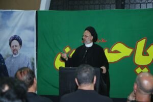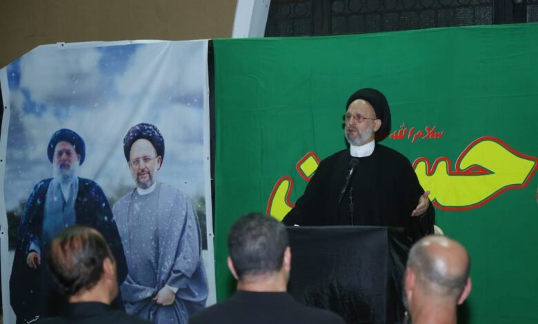 وقال لا يمكن ان نكون مع الحسين(ع) وتسكت عن ظالم او محتل او نقف على الحياد امام ما تتعرض له غزة من مجازر وابادة جماعية وتدميرامام مرأى ومسمع هذا العالم الذي يتغنى بالحريات وحقوق الإنسان أو امام ما يتعرض له الجنوب من تهديدات واعتداءات .