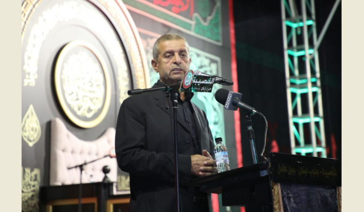 ختم: ” جميع الأطراف الذين رفضوا المقاومة في نفس الوقت يرفضون الحوار ويجددون كلامهم بطرح حوار بأساليب ملتوية لا قيمة لها ولا جمع لها على مساحة لبنان بين الاحزاب والطوائف والمذاهب يتمسكون بلغة التفرقة بلغة الانانية لا يريدون لبنان أن يحمل قضية واحدة مركزية كدولة وشعب ومؤسسات. نحن نتمسك بشعار طرحناه يتمثل بوحدة الشعب والجيش والمقاومة ، مواقفهم لن توصل الى اي مكان، نحن  لن نحيد عن موقفنا بتحملنا المسؤولية بالدفاع عن الجنوب نحن واخوتنا كثنائي وطني على مستوى حماية البلد والسعي الى مقارعة اسرائيل التي تنهش بالامة العربية وتقتل الشعب الفلسطيني وتدمر جزءًا من الاراضي اللبنانية، سنتمسك بثقافة الامام الحسين في وجه الظالمين ثورة وشهداء ومقاومة مع عقيدة راسخة بأنها قضية مقدسة لا نريد مقاربتها الا بالحق”.