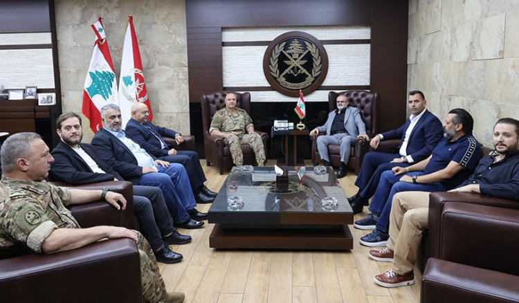 بداية، قدم الوفد الشكر للعماد عون على قيامه “بحفظ أمن البلاد والمؤسسات العامة والخاصة وعلى رأسها المؤسسة العسكرية، التي تعمل ليلا نهارا لحفظ الأمن في البلاد”، وتطرق الحديث الى “عدة امور وملفات وكانت الأجواء ايجابية”، وقال سرور: “بالجيش القوي تحفظ الاوطان والمؤسسات وتصان الحقوق”.