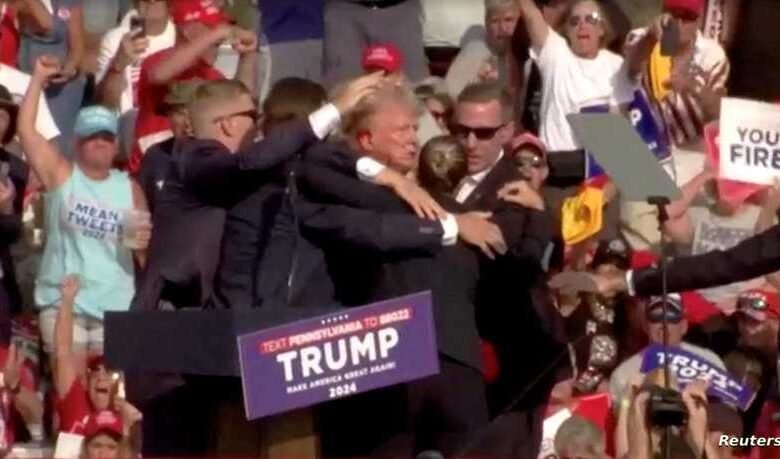 ونجا ترامب، السبت، من محاولة اغتيال بعد أن أطلق شخص رصاصة أصابت أذن الرئيس السابق بينما كان يتحدث في تجمع انتخابي في ولاية بنسلفانيا.