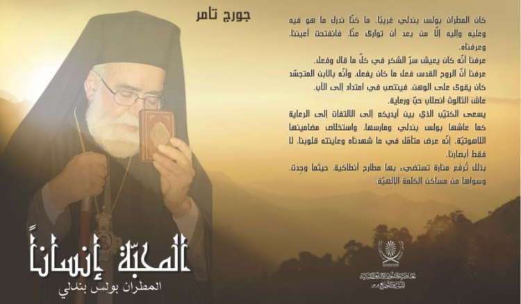 أصدرت تعاونية النور الأرثوذكسية للنشر والتوزيع كتابا جديدا بعنوان: “المحبة إنسانا- المطران بولس بندلي” لمؤلفه الدكتور جورج تامر، حيث يسعى الكتيب للإلتفات إلى الرعاية كما عاشها بولس بندلي ومارسها، واستخلاص مضامينها اللاهوتية.