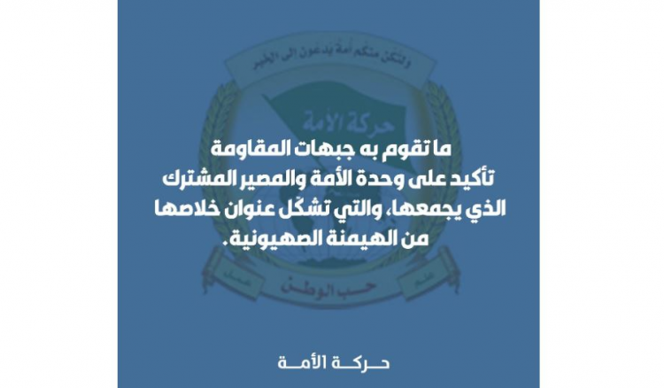نوهت “حركة الأمة” في بيان، “بالعملية العسكرية النوعية التي نفذتها القوات المسلحة اليمنية، باستهدافها عمق كيان العدو الصهيوني الغاصب، في مدينة يافا المحتلة المسماة صهيونيا تل أبيب، مركز الكيان الغاصب والموقت”، معتبرة أن “هذا الإنجاز العظيم والنجاح الكبير منعطف تاريخي ومحطة مفصلية في تاريخ الصراع مع العدو الصهيوني”.