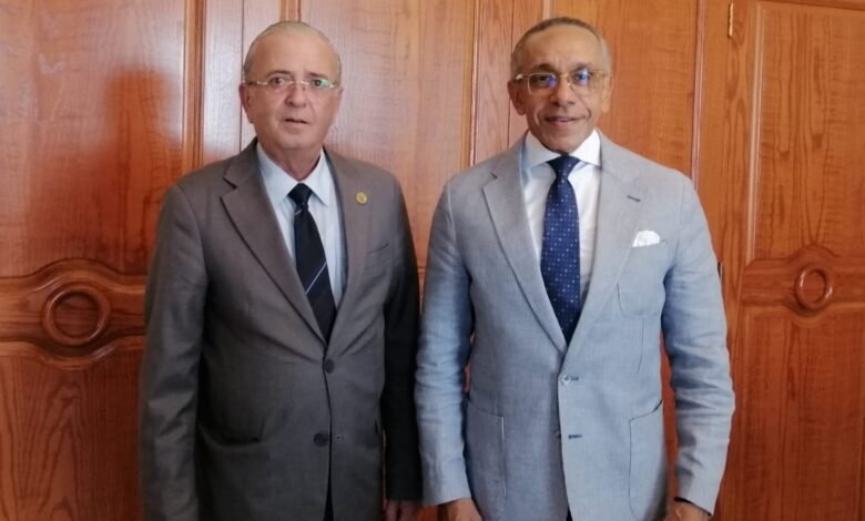 استقبل السفير علاء موسى سفير جمهورية مصر العربية لدى الجمهورية اللبنانية ظهر اليوم في مكتبه بمقر السفارة ، رئيس المجلس الثقافي اللبناني والاغترابي الكاتب والاعلامي “فادي رياض سعد” حيث تسلّم منه نسخة مصغّرة عن كتابه (أكبر كتاب في العالم – رواد من بلاد الأرز)، الذي صدر برعاية وزارات الثقافة والاعلام والسياحة وقدّم للكتاب كل من وزيري الثقافة والاعلام القاضي محمد وسام المرتضى والمهندس زياد مكاري. رحّب السفير موسى بالاعلامي سعد، منوهًا بالجهود الصخافية والثقافية التي توثّق تاريخ العلاقات اللبنانية المصرية وقال: “هذا العمل انجاز ثقافي وتوثيقي ويعتبر وثيقة تعيد إحياء الإرث الحضاري اللبناني وتقديمه إلى العالم على المنابر والكتب والمنصات للتذكير بما يزخر به تاريخُ لبنان، ويسلط الضوء على عمق العلاقات الي تربط جمهورية مصر العربية بالجمهورية اللبنانية”. وقد أبدى السفير موسى كل الدعم مبدياً التعاون في المجالات الثقافية التي تهم البلدين، وأكد على عمق العلاقات التاريخية القائمة بين مصر ولبنان على كافة المستويات، وقال: “نحن نعمل بجهود حثيثة على تطويرها وتعزيزها في كافة المجالات لما فيه مصلحة البلدين والشعبين الشقيقين، وهناك امكانات كبيرة لدى البلدين لا بد من استثمارها، والعمل على مشاريع مشتركة تعطي صورة حقيقية عن البلدين وما يزخران به ويجب أن تترجم ميدانيا في مشاريع مشتركة تعود بالفائدة على البلدين والشعبين الشقيقين”. من جهته، أوضح سعد ان هذه الزيارة تأتي ضمن سلسلة زيارات يقوم بها المجلس الى السفارات العربية والهيئات والجمعيات الثقابية والثقافية والشخصيات النقابية والفعاليات الإغترابية، للتشاور وبلورة المشاريع والأفكار ببعدها الإجتماعي، الثقافي والإقتصادي، في لبنان والدول الصديقة والشقيقة، مشددا على “مبدأ التعاون البناء كل من موقعه وضمن اختصاصه إنطلاقا من المسؤولية المشتركة”.