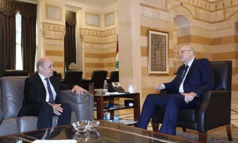 وفيما ذكرت المعلومات أنّ لودريان شدد خلال لقائه ميقاتي على ضرورة تفعيل دور اللجنة الخماسية ولم يحمل أي طرح جديد أو مبادرة حوارية، قالت مصادر السرايا الحكومية لـ«الجمهورية» انّ لودريان تحدث عن ضرورة ايجاد حلول، وسأل عن الامكانات المتوافرة لإيجاد مخارج. واكد دعمه لدور المجموعة الخماسية العربية ـ الدولية واستمرار عملها، مشدداً على ان لا خلافات بين اركانها. وقال انه «لا بد من ان نصل في مرحلة ما الى فتح الابواب امام الحل»، مشدداً على «ضرورة تفعيل دور المجموعة الخماسية وايجاد المخارج للوضع الراهن ولملاقاة الحلول في ظروف وتوقيت معينين».