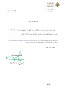 يعقد مجلس الوزراء جلسة بعد ظهر يوم الخميس في 13 تشرين الثاني 2025 في السراي الحكومي، للبحث في المواضيع المرفقة بالخبر.