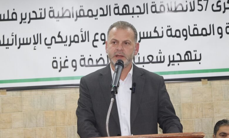 واستهل صلح كلمته بالتأكيد أن اللقاء ليس لإحياء ذكرى فحسب، بل لتجديد العهد في محطة نضالية شكّلت على مدى سبعة وخمسين عاماً جزءاً أصيلاً من مسار المواجهة، مشيداً بثبات الجبهة في موقعها “في قلب المواجهة، وفي صفّ الشعب، وفي خندق المقاومة”.