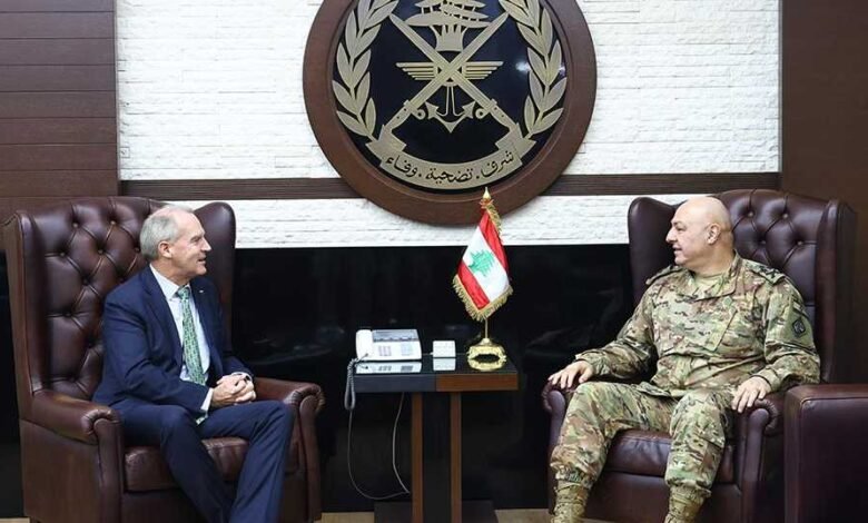 استقبل قائد الجيش العماد جوزاف عون في مكتبه في اليرزة، السفير الأوسترالي في لبنان Andrew Barnes يرافقه الملحق العسكري العقيد الركن الطيار Ian Goold، وتناول البحث الأوضاع العامة في البلاد والتطورات على الحدود الجنوبية.