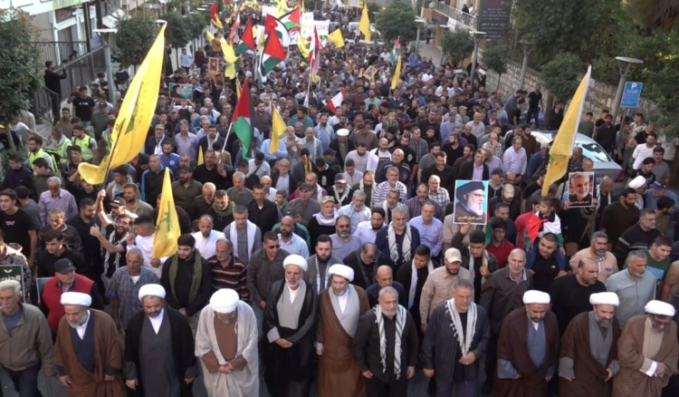 نظم “حزب الله” في منطقة جبل عامل الثانية مسيرة حاشدة في مدينة النبطية، انطلقت من أمام النادي الحسيني وجابت شوارع المدينة، وسط الشعارات التضامنية مع غزة، شارك فيها عضو كتلة “الوفاء للمقاومة” النائب علي فياض، مسؤول منطقة جبل عامل الثانية في “حزب الله” علي ضعون، شخصيات وفاعليات، علماء دين والأهالي.