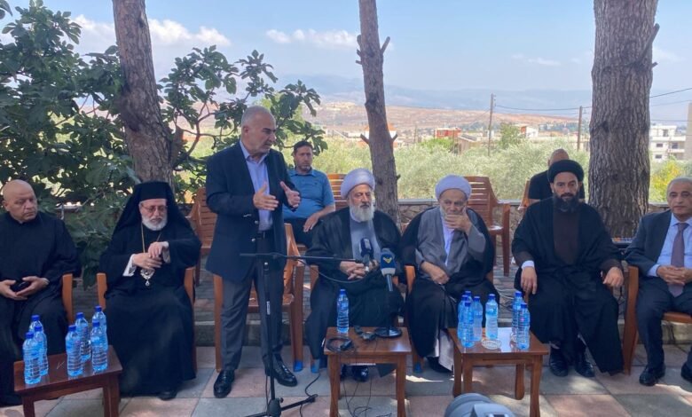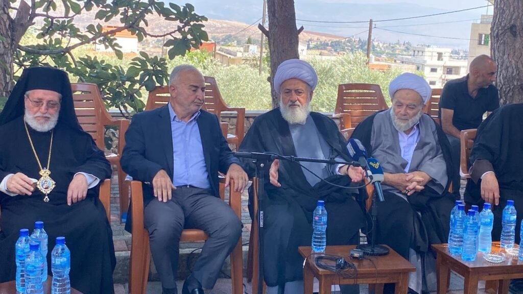 القى سماحة نائب رئيس المجلس الإسلامي الشيعي الاعلى محاضرة بعنوان “ترسيخ العيش المشترك مسؤولية وطنية ودينية ” خلال اللقاء الحواري في دارة المحامي الاستاذ غسان شيت في بلدة كفركلا ، حضره النائبان: د. علي فياض ود. قاسم هاشم، المطران الياس كفوري، المفتي الشيخ عبد الحسين عبدالله ،المفتي الشيخ حسن دلة وعضو المكتب السياسي لحزب الله غالب ابو زينب ورؤوساء بلديات وفعاليات وشخصيات اجتماعية وتربوية وعلماء دين .