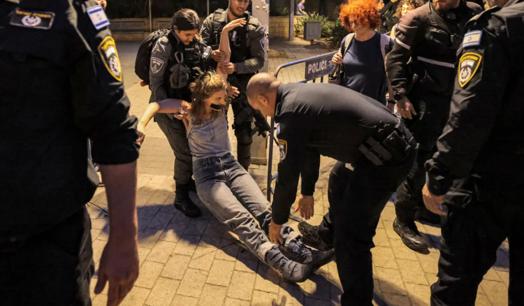 ونقلت “سكاي نيوز عربية” عن صحيفة “تايمز أوف إسرائيل”، ان شرطة الاحتلال سحبت بعض المتظاهرين “من أيديهم وأرجلهم” من وسط الطريق، بهدف تفريق الحشود التي طالبت برحيل رئيس الوزراء بنيامين نتنياهو.