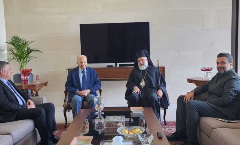 استقبل الرئيس العماد ميشال عون في دارته في الرابية وفداً يمثّل بطريرك أنطاكية وسائر المشرق للروم الأرثوذكس يوحنا العاشر اليازجي ضمّ رئيس دير مار الياس شويا المطران كوستا كيال والنائب جورج عطالله والقنصل مارك غريب.