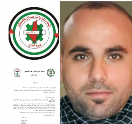 تقدم الاتحاد العام لنقابات عمال فلسطين – فرع لبنان في بيان، من وحدة النقابات والعمال المركزية في “حزب الله” بـ “التهاني والتبريكات بشهادة النقيب فادي محمود ضاوي شهيدا على طريق القدس”.