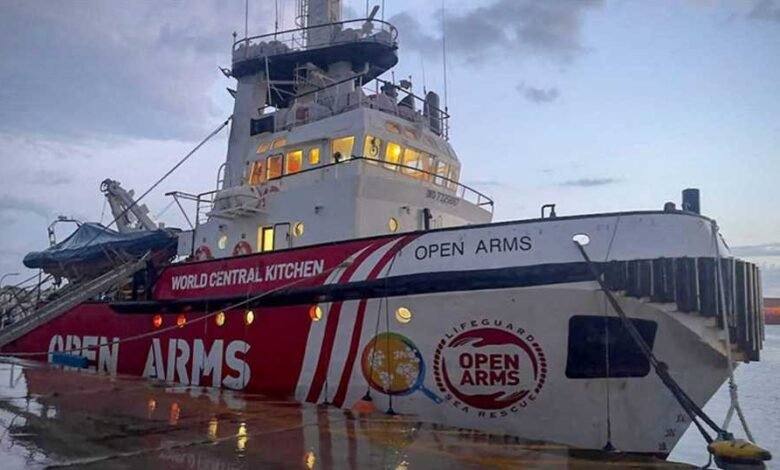 وشوهدت سفينة الإنقاذ (أوبن آرمز) وهي تبحر من ميناء لارنكا في قبرص وتسحب بارجة تحتوي على حوالي 200 طن من الطحين والأرز والبروتينات