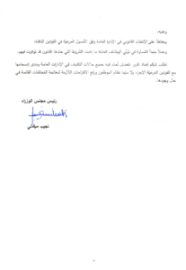 وجه رئيس حكومة تصريف الاعمال نجيب ميقاتي كتابا الى مجلس الخدمة المدنية عن حالة “التكليف “في الادارات العامة طلب بموجبه اعداد تقرير مفصل تحدد فيه كل حالات التكليف في الادارات العامة ومدى انسجامها مع الاقوانين المرعية.