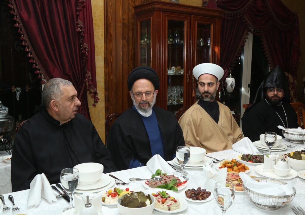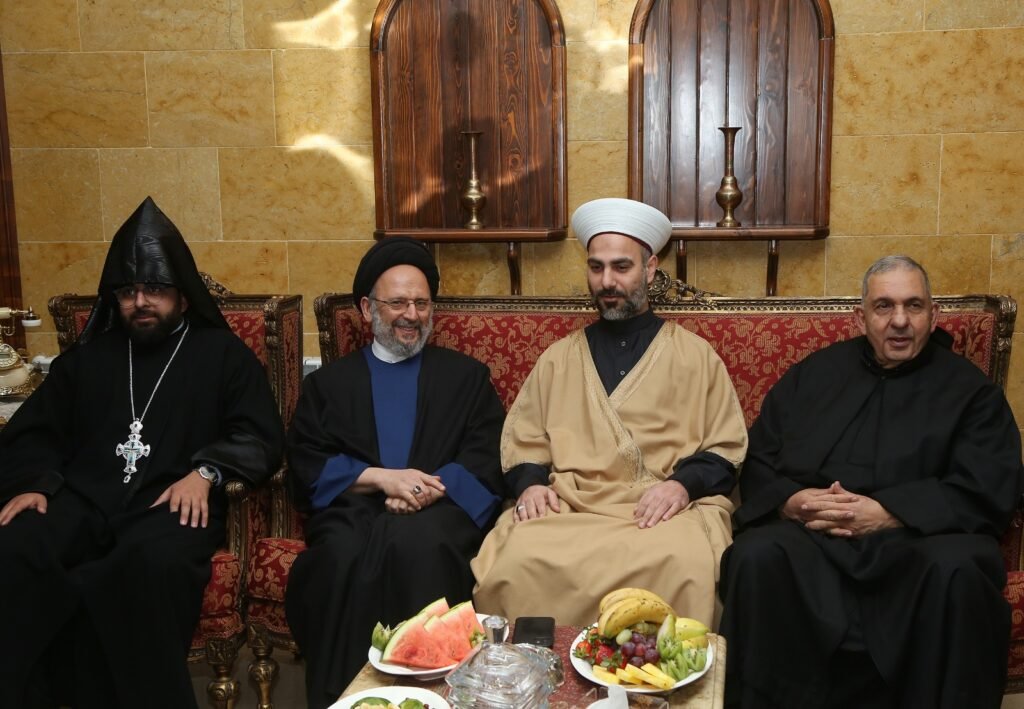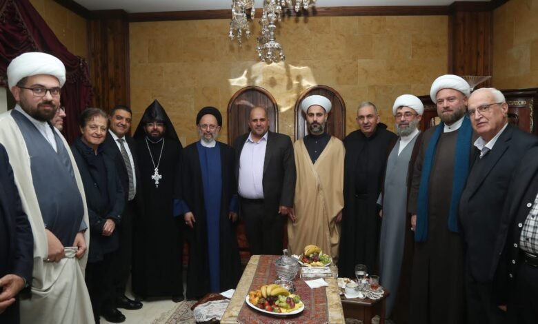 ودعا سماحته إلى التركيز على النقاط المشتركة والعمل على تعزيزها وأسقاطها على أرض الواقع بدلا من ان تبقى حواراتنا ولقاءاتنا في إطار المجاملات والديكور مؤكدا ان هذا الوطن لا يمكن ان يبنى إلا بجميع طوائفه لا بما يطرح من مشاريع انفصال وتقسيم وفدرلة وبعيدا عن سياسة التخوين والاتهامات الهواجس المصطنعة وللأسف فإن الامر بنا وصل إلى ان نجزئ الإنسانية والتضامن الإنساني.