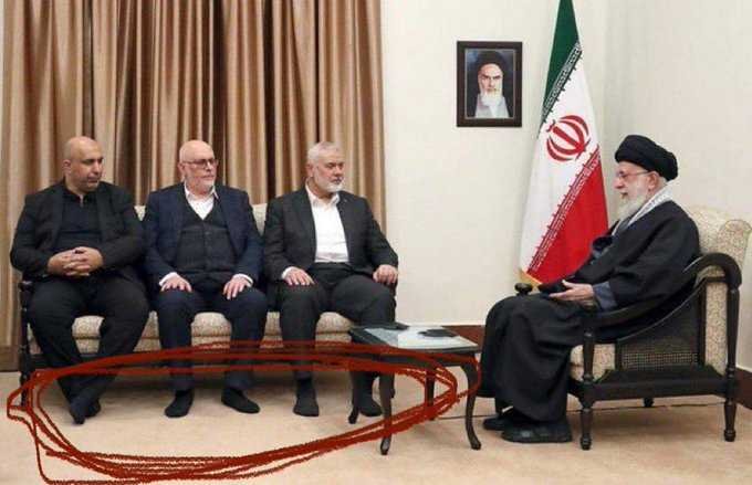 تداول نشطاء على مواقع التواصل الاجتماعي صورا من لقاء رئيس المكتب السياسي لحركة حماس والوفد المرافق له خلال لقاء المرشد الأعلى بإيران، علي خامنئي.