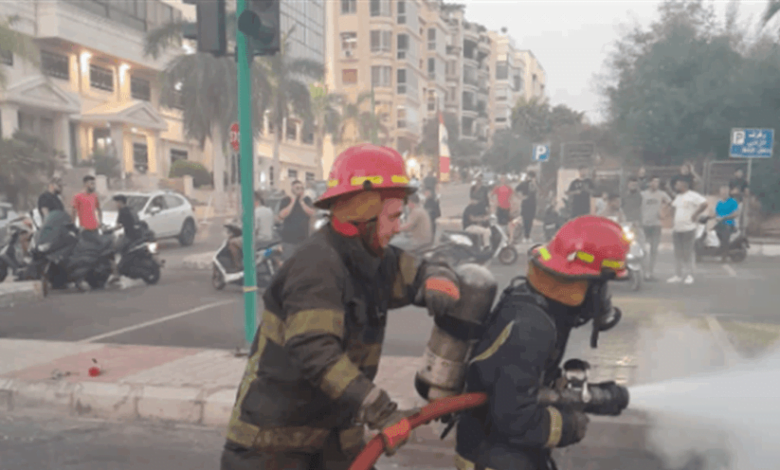 اخمد عناصر من الدفاع المدني مساء اليوم حريقاً شب داخل سيارة في منطقة الجناح في بيروت.
