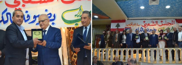 ثم سلّم الدكتور أسعد السحمراني الدروع التكريمية لكل من اللواء إبراهيم بصبوص، والمحامي سعد الدين الخطيب، والصحافي احمد منصور ( عن الوكالة الوطنية للإعلام وموقع الاقليم والشوف) والدكتورة هبة قداح عن جمعية “هيا نبدأ”، كما تم تكريم من المتطوعين، حيث تم تسليمهم ميدالية المجلس الشعبي من رئيس الدفاع المدني الشعبي في لبنان منير كنيعو وعضو الهيئة العامة للمجلس المربية رلى ملكي وعضوا الهيئة الإدارية المحامية فريال العبد والحاج عمر شقرة . والمكرمون هم : فيفيان فواز والمحامي القائد عمر ملكي والأساتذة حسن عبدالله وديما فواز وعبد الجليل كيوان ونانسي منصور وعلي الحاج شحادة الدكتورة غنوة عبدالله والمهندسين علي ملكي واحمد يحي عويدات والدكتورة الاء عبدالله والمتطوعات سميرة عبدالله وملاك منصور ومروى كيوان والمجاز الجامعي أحمد وسام عويدات القائد المتطوع ديب فواز والناشطة الإجتماعية صونيا الشحيمي.