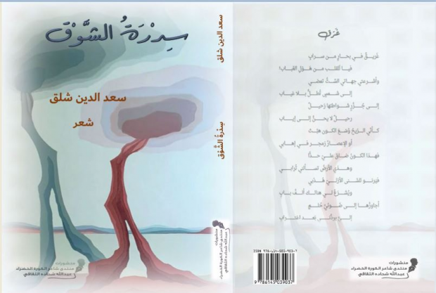 صدر عن منشورات “منتدى شاعر الكورة الخضراء عبدالله شحادة الثقافي”، ديوان “سِدْرَةُ الشَّوْق” للشاعر سعد الدين شلق، استهلّه بإهداء “إلى كلّ الباحثين عن النور، إلى عشّاق الحياة الجميلة الراقية، يرونها في زهرة، أو ابتسامة أو شدو طائر، إلى روح أبي وأمّي رحمهما الله”، تلته كلمة تقديريّة لرئيسة المنتدى المُهندسة الشاعرة ميراي عبدالله شحادة.