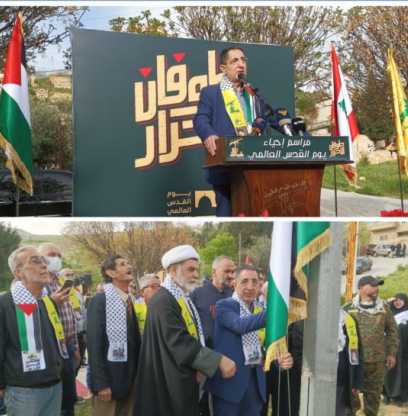 جاء ذلك خلال مراسم أقامها “حزب الله” و”كشافة الإمام المهدي”، تعظيما للقرآن الكريم، بالإضافة إلى رفع راية فلسطين في ساحة العين الفوقا في بلدة بيت شاما، تضامنا مع الشعب الفلسطيني، لمناسبة يوم القدس، بمشاركة فاعليات دينية وبلدية واختيارية واجتماعية.