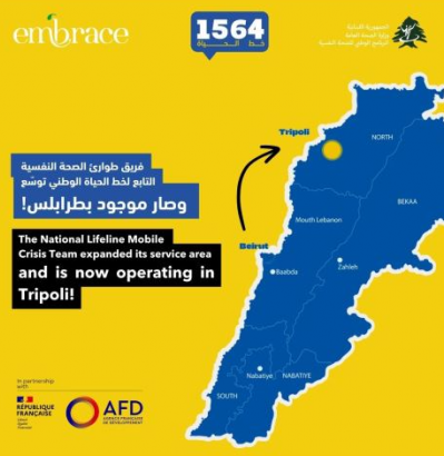 أعلن البرنامج الوطني للصحة النفسية في وزارة الصحة و جمعية “إمبرايس” في بيان، إطلاق فريق طوارىء للصحة النفسية التابع لخط الحياة 1564 في طرابلس، في إطار توسيع الاستجابة لحالات الطوارئ النفسية وتوسيع رقعة خدمات الآلية الوطنية للاستجابة لطوارئ الصحة النفسية الوسعي المستمر لدعم خدمات الصحة النفسية في لبنان.