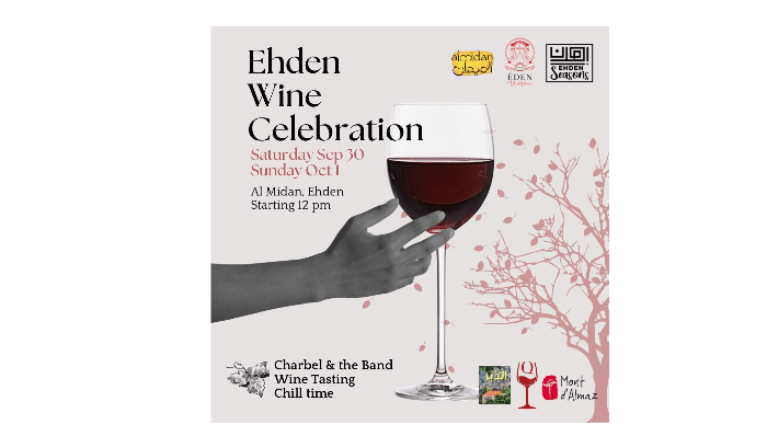 تنظم جمعية “الميدان” من خلال برنامج “Ehden Seasons ” فعاليات  “100نشاط بِ 100 يوم”، “احتفال اهدن بالنبيذ” يومَي السبت والأحد المقبلين، على ساحة الميدان، وذلك بالتعاون مع منتجين محليين للنبيذ “les Caves d ‘Eden” ونبيذ”الدير”من اهدن و”Mont d’Almaz” و”Q“من بشرّي مع اجواء موسيقية حيّة.