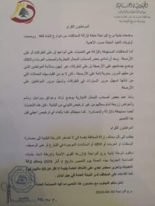 ستقوم شرطة بلدية برج البراجنة تؤازرها القوى الأمنية وشرطة اتحاد بلديات الضاحية الجنوبية بهذه الحملة يوم الخميس بتاريخ 2 أيار 2024 وستتم إزالة التعديات وتحرير محضر تعدي على الأملاك العامة بقيمة لا تقل عن 10 ملايين ليرة كما الادعاء على المخالف لدى النيابة العامة في جبل لبنان .