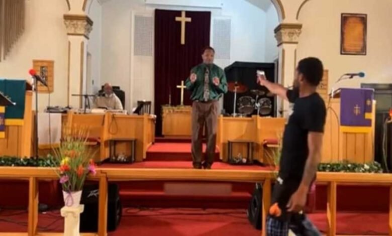 سحب رجل مسدسه على كاهن في منتصف خطبته، أثناء الصلاة في إحدى كنائس مدينة برادوك بولاية بنسلفانيا.