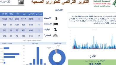 وزارة الصحة تنشر التقرير التراكمي للطوارئ الصحية