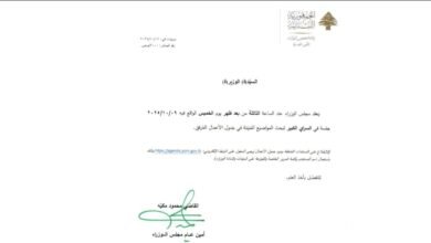 يعقد مجلس الوزراء جلسة عند الساعة الثالثة من بعد ظهر يوم الخميس الواقع فيه 9 أيلول 2025 في السراي الكبير،…