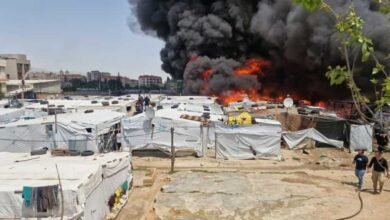 حريق في مخيم للنازحين في بحنين