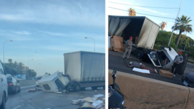 انزلاق شاحنة كبيرة تحت جسر دوحة الحص – الناعمة بسبب المازوت