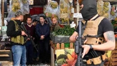 بائع خضار مسنّاً يقع أرضاً ظناً أنّ وزير الاقتصاد ومرافقيه الملثمين عـ.ـصابة!