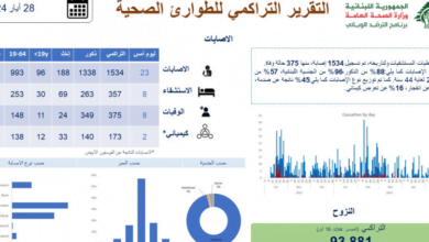 نشرت وزارة الصحة العامة متابعةً للعدوان الاسرائيلي على لبنان، التقرير التراكمي للطوارئ الصحية ل4 حزيران ٢٠٢٤. وقد تم تسجيل 1603…