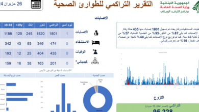 متابعةً للعدوان الاسرائيلي على لبنان، نشرت وزارة الصحة العامة التقرير التراكمي للطوارئ الصحية ل٢٦ حزيران ٢٠٢٤، وقد تم تسجيل 1801…