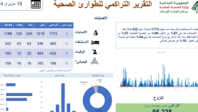 نشرت وزارة الصحة العامة متابعةً للعدوان الاسرائيلي على لبنان، التقرير التراكمي للطوارئ الصحية ل١٩ حزيران ٢٠٢٤. وقد تم تسجيل 1774…